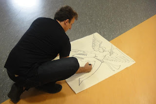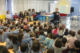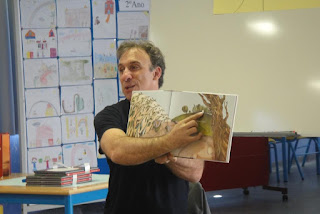 Hoje, tivemos o privilégio de receber Pedro Seromenho - conhecido escritor, ilustrador e também contador de histórias. Assistiram às suas sessões as crianças do pré-escolar do nosso Agrupamento que, para além de ouvirem contar histórias de uma forma muito expressiva e criativa, puderam também ver como o autor desenha tão bem e aparentemente de modo tão fácil.